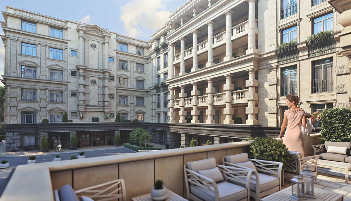 Каков канон респектабельности? Это лучшие материалы, идеальные инженерные системы плюс образованный архитектор, который понимает, как современные технические нужды соединить с пропорциональными особенностями ордера. Комплекс апартаментов такого объема и размера, как Astris, — это нечто среднее между особняком и городским домом. Это, скорее, мраморный дворец: он покоится на гранитном пьедестале, но отделан дорогим юрским мрамором.